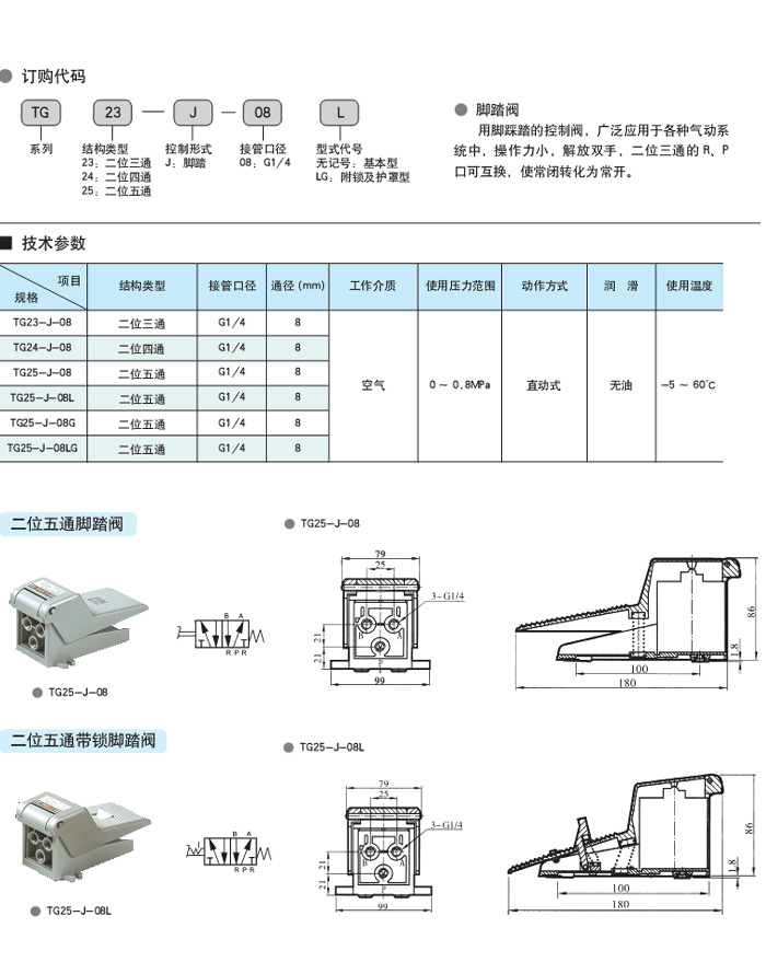 TG25-J-08LG,STNC气动控制元件,脚踏阀